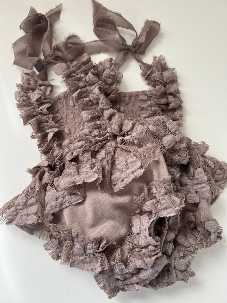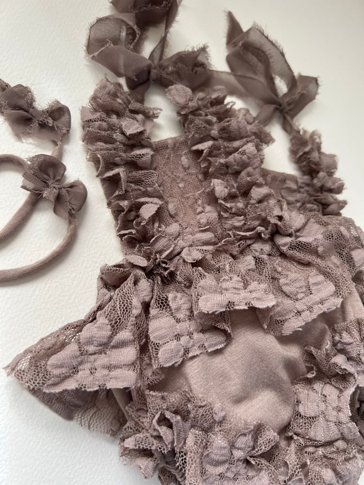 Taupe Lace Newborn Romper & Headband